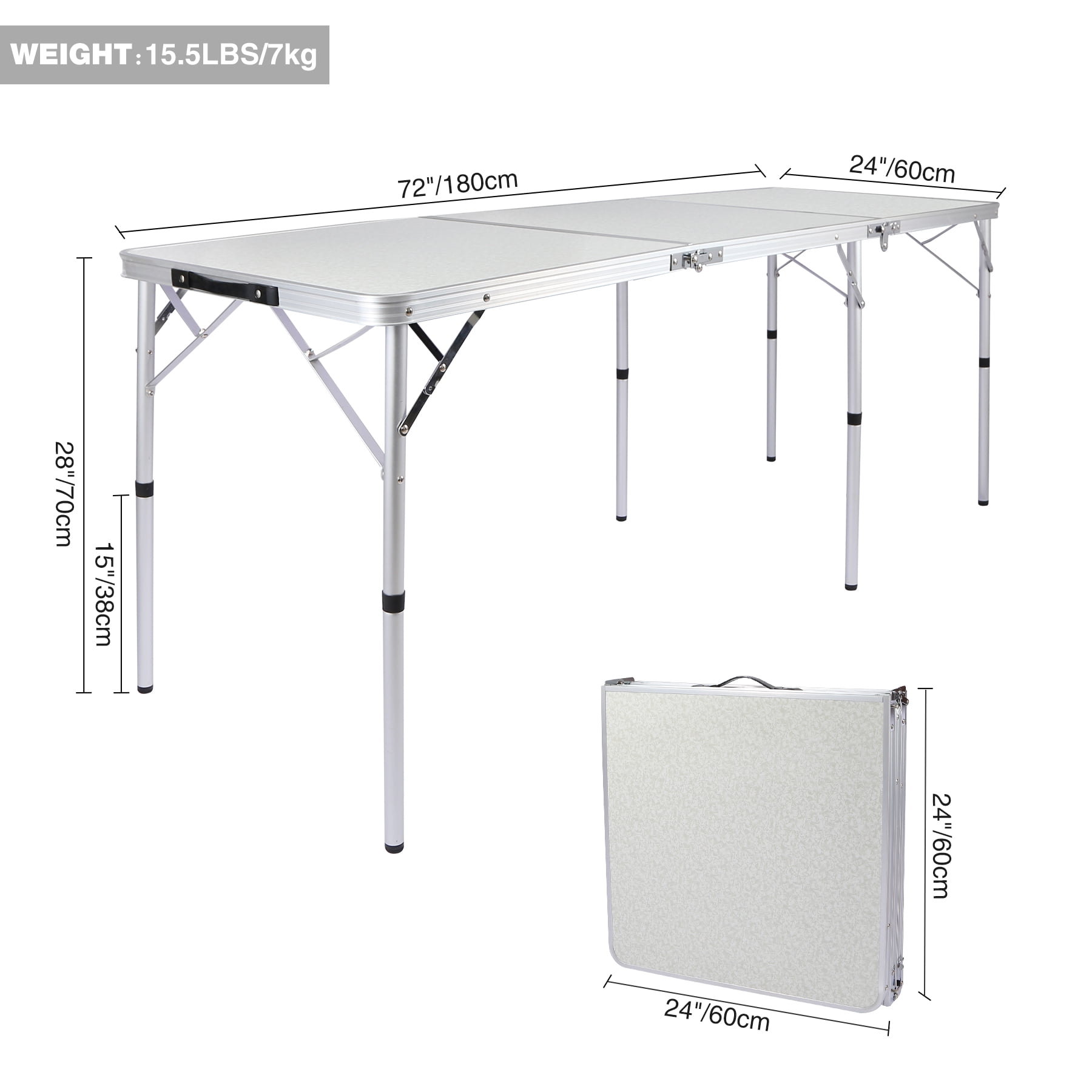 Redcamp Folding Camping Table 6ft Portable Lightweight Tri Fold Outdoor Table With Adjustable Heights Aluminum Legs Compact For Picnic Bbq White Walmart Com