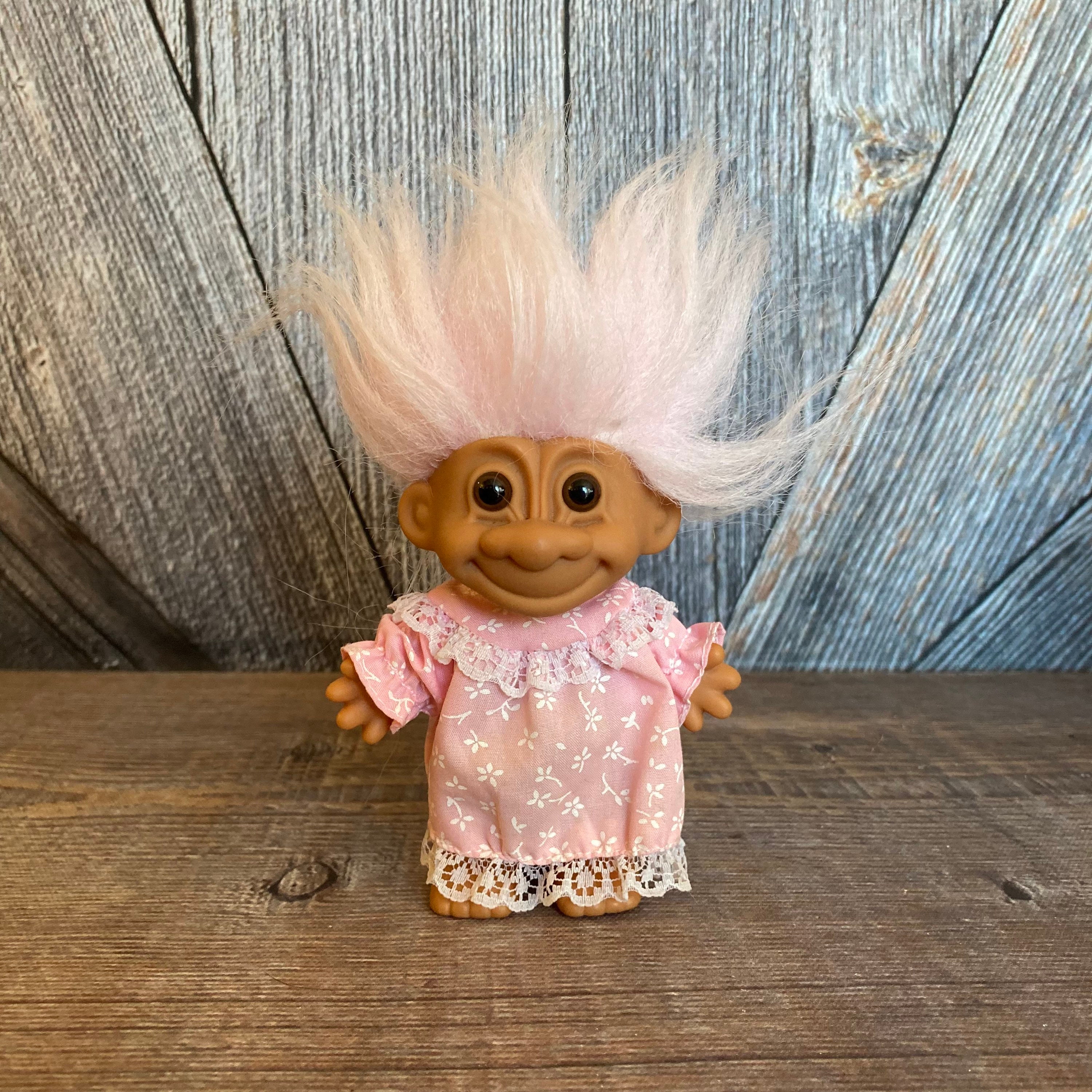 Vintage Troll Doll 4 Tall Pink Hair Ace Brand Treasure Trolls Pink Star Gem Toy Ebay